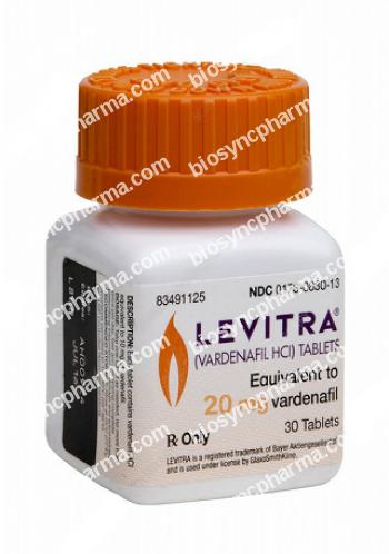 Brand Levitra was developed by the pharmaceutical company Bayer/GlaxoSmithKline and uses Vardenafil HCl as main component of the medication. Levitra is an oral drug used to treat erectile dysfunction. Sexual stimulation causes the production and release of nitric oxide from the nerves endings of the cavernous bodies of the penis hereby activating enzyme guanylate cyclase. Guanylate cyclase in its turn is responsible for production of cyclic guanosine monophosphate (cGMP). The cGMP causes widening and relaxation of the blood vessels carrying blood to the penis. Levitra prevents phosphodiesterase-5 enzyme from destroying cGMP and thus helps to support blood flow to the penis.